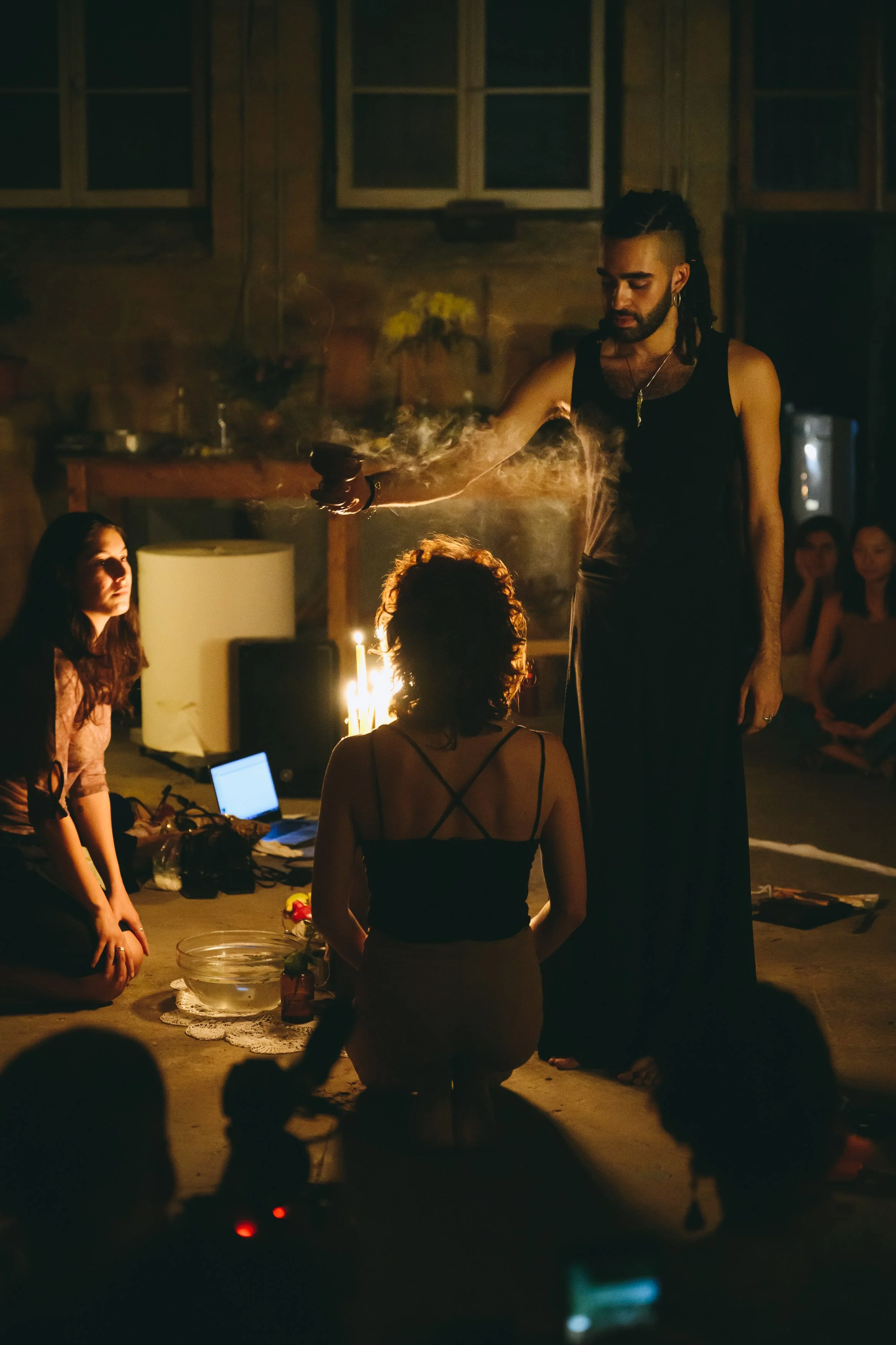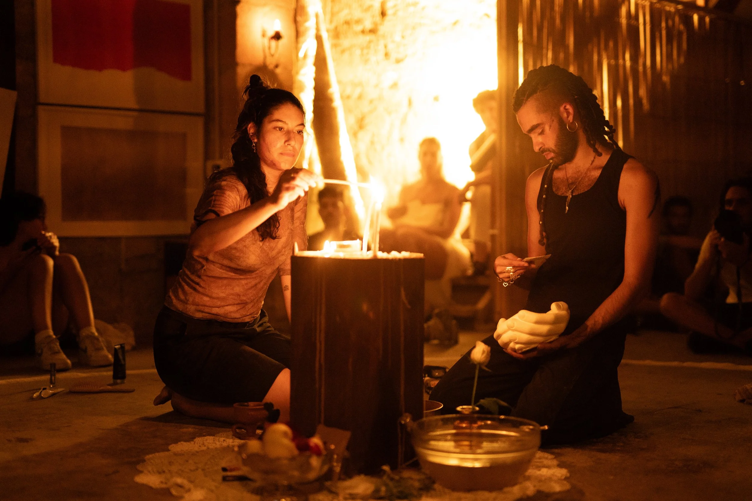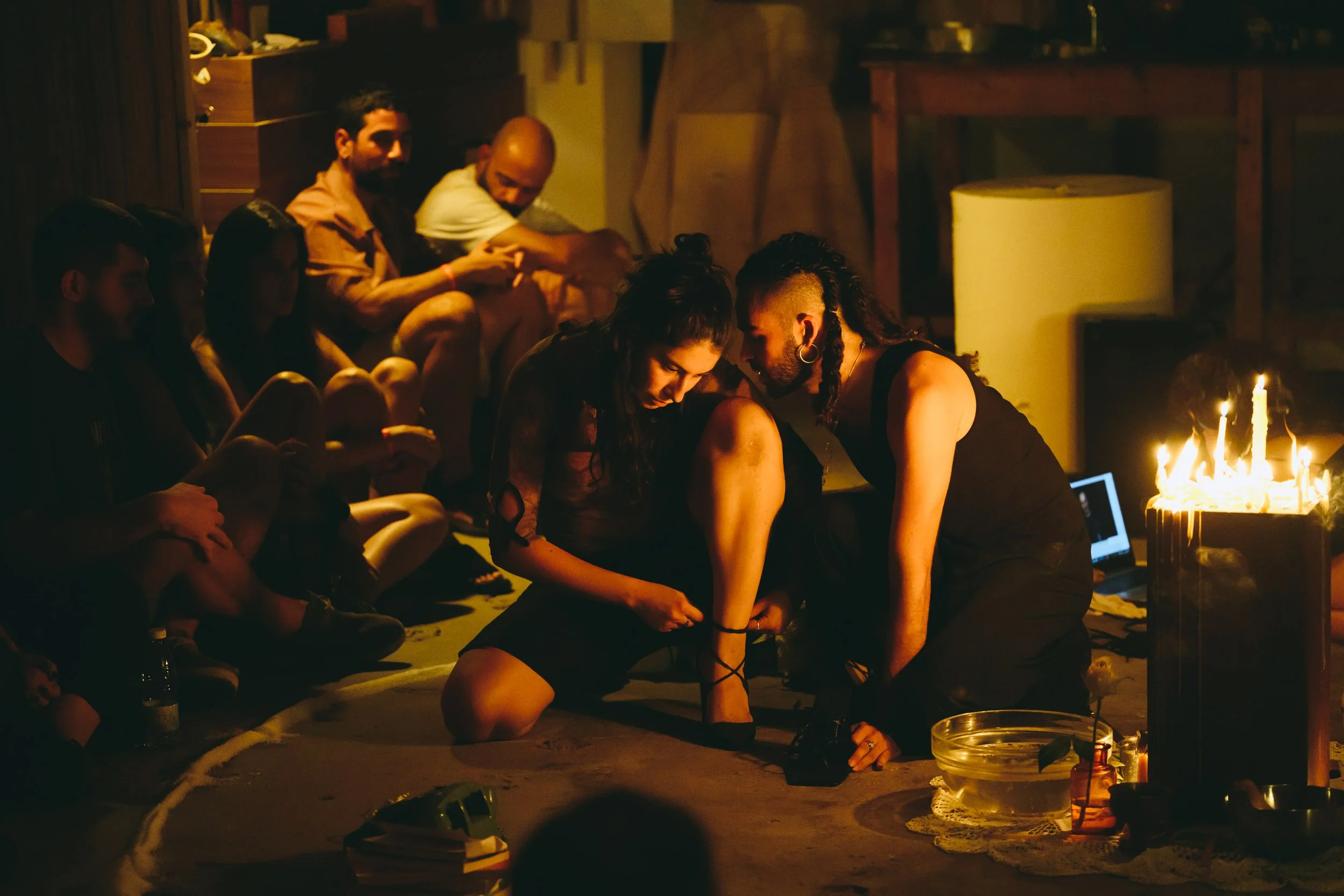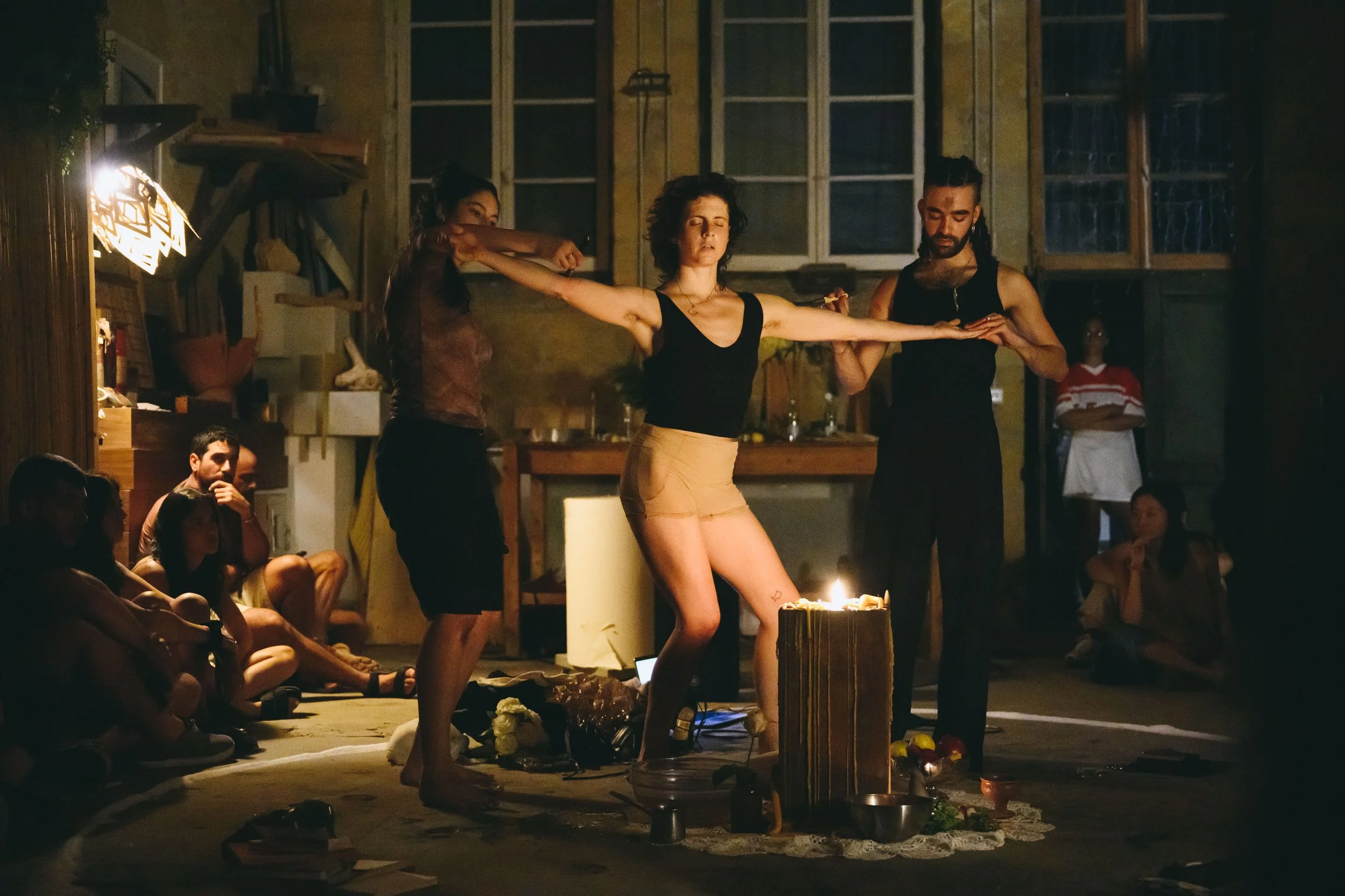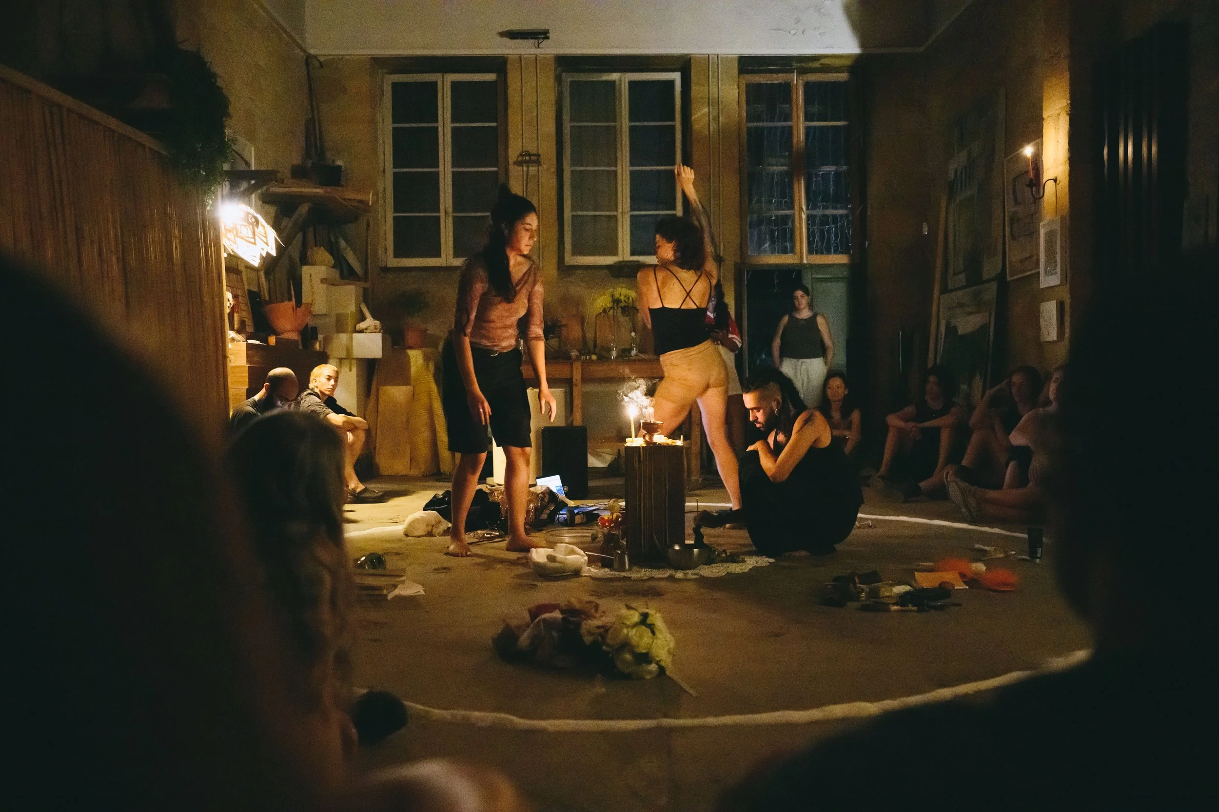 Karma Accelerator is a space of action and transformation. After a residency period dedicated to the collection of sorrows from Nicosia’s community, Karma Accelerator takes place within a circle made with salt. There, a small group of performers are engaged in the transformation of those sufferings with improvised actions brought from the world of dance, theatre and performance. For one night they will be the Drycleaners of the Soul, laundering the dark underbelly of the city. Nothing is certain, yet everything is real, transformation may happen, it may also not. Can you feel the click?